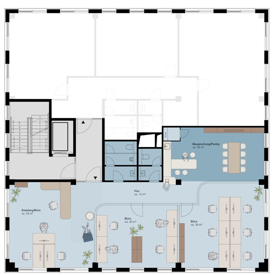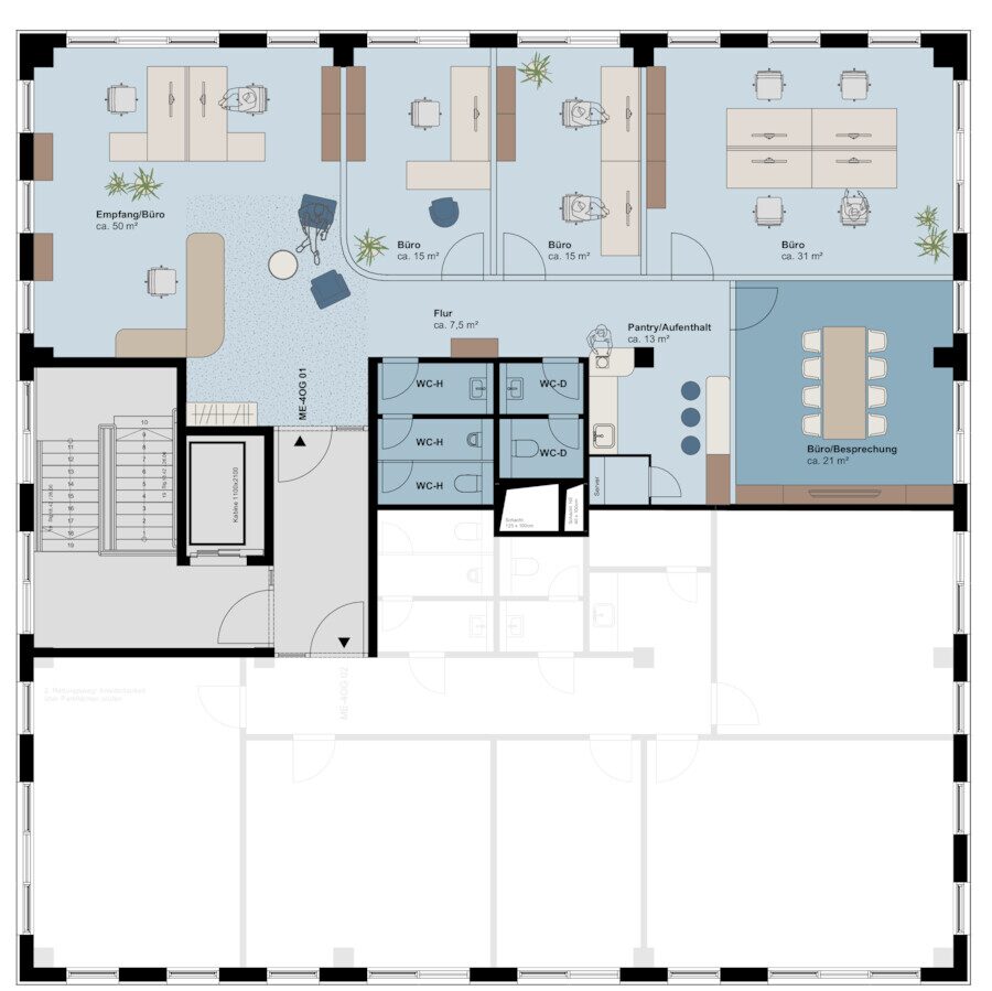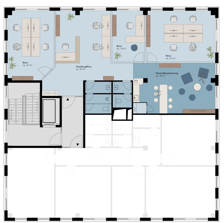 Mieten Sie je nach Bedarf und Unternehmensgröße Ihre individuelle Fläche. Sie haben die Wahl: Einzelbüros oder offene Büros – wählen Sie einfach aus unseren durchdachten Grundrisslösungen aus. Wir bieten Ihnen Flächen auf einer halben Etage (ca. 147 qm) oder einer ganzen Etage (ca. 350 qm). Oder über mehrere Ebenen, bis hin zum eigenständigen Haus oder zu mehreren Gebäuden. Im Elbcube 5.B besteht die Möglichkeit einer medizinischen Nutzung, z.B. als Therapie- oder Praxisfläche – sprechen Sie uns an für ihr individuelles Angebot!